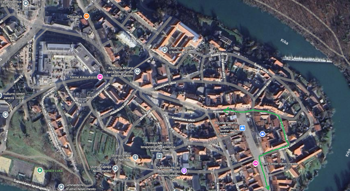 - Dostave v spodnji in srednji del Glavnega trga potekajo mimo Glasbene šole Marjana Kozine po Jenkovi ulici in naprej na trg.