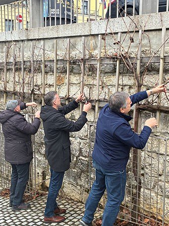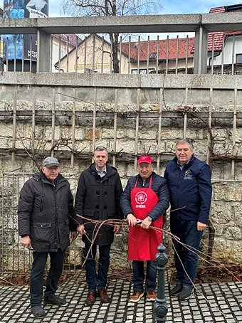 Župan Gregor Macedoni in mestni viničar oziroma skrbnik mestne trte Peter Korene iz Društva vinogradnikov Trška gora sta v družbi botrov trte Miše Andrijaniča in predsednika Zveze društev vinogradnikov Dolenjske Mirana Juraka na valentinovo tradicionalno obrezala potomko najstarejše žlahtne vinske trte na svetu, ki raste na Pugljevi ulici v Novem mestu.