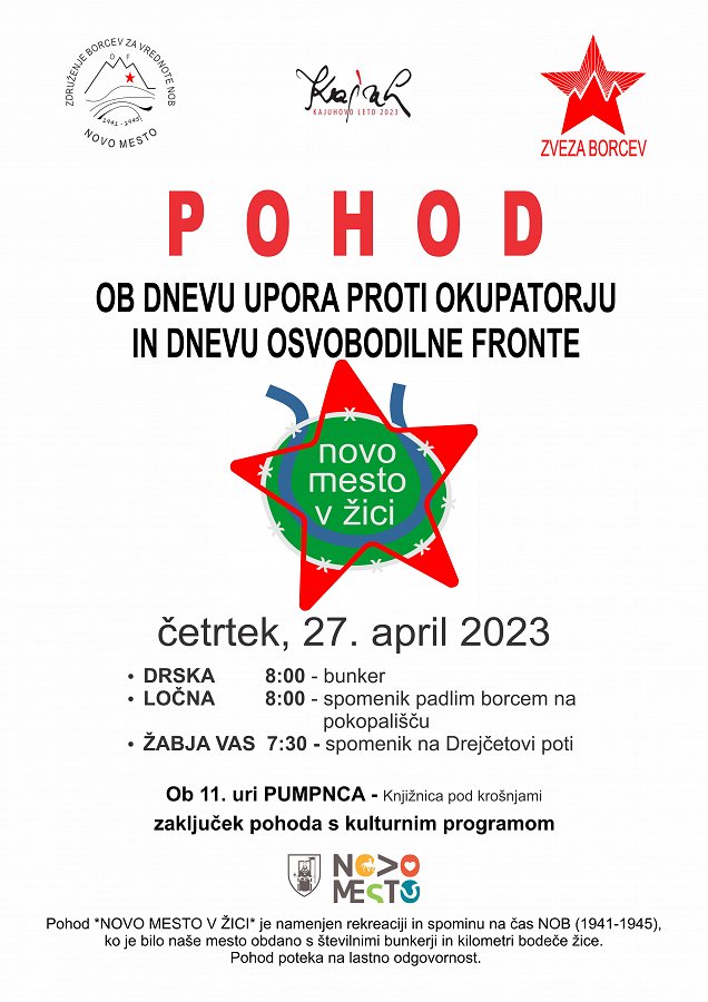 Ob Dnevu upora proti okupatorju bomo ponovno hodili po delu poti NOVO*MESTO*V*ŽICI in se na ta način spomnili obdobja okupacije in posledičega upora in boja za svobodo ter pravičnejši svet, ki se je pri nas začel z ustanovitvijo Osvobodilne fronte 27. aprila 1941.