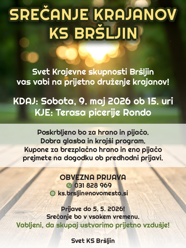 Datum: 14.1.2026, ob 18.00 uri Kraj: Kočevarjeva ulica 13 Prisotni: KS Bršljin - Mira Kump (predsednica) Ks Bršljin – Vanja Kavšček (tajnica) KS Bršljin – Jernej Jakše KS Bršljin – Jožica Šepetavc KS Bršljin – Jaka Može Odsotni: KS Bršljin – Gregor Vovk - opravičen KS Bršljin – Blaž Habjan - neopravičen