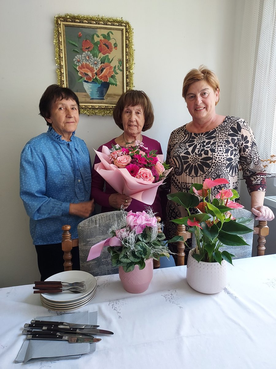 Gospa Jožefa je 2. oktobra 2025 dopolnila spoštljivih 90 let. Mladostna, z iskrivim pogledom in zanimivo življenjsko zgodbo. Ob jubileju sta jo obiskali predstavnici Rdečega križa Bojana Prišel Zrilič in krajevne skupnosti Ksenija Avsec, pogovoru pa se je pridružila tudi njena soseda in prijateljica Štefka.