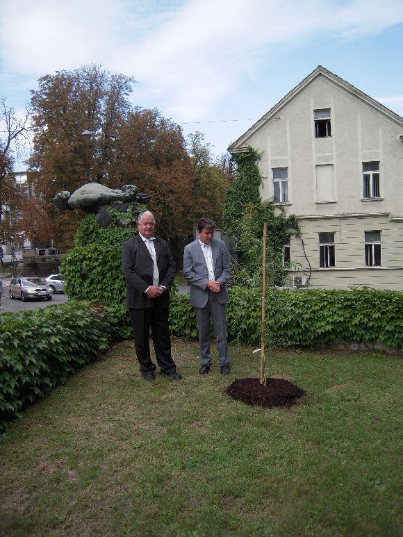 V Novem mestu se je danes mudil državni sekretar v Kabinetu predsednika Vlade RS Jožef Školč, sicer tudi predsednik Sveta Javnega zavoda Maribor 2012. Z županom Mestne občine Novo mesto Alojzijem Muhičem sta se med drugim pogovarjala o projektu Evropska prestolnica kulture 2012, v katerem kot partnerska občina sodeluje tudi Novo mesto.Župan Muhič in državni sekretar Školč sta ob tej priložnosti pri spomeniku Talec v Novem mestu zasadila vrbo žalujko. Ta je bila namreč do začetke obnove Knjižnice Mirana Jarca sestavni del tega okolja.