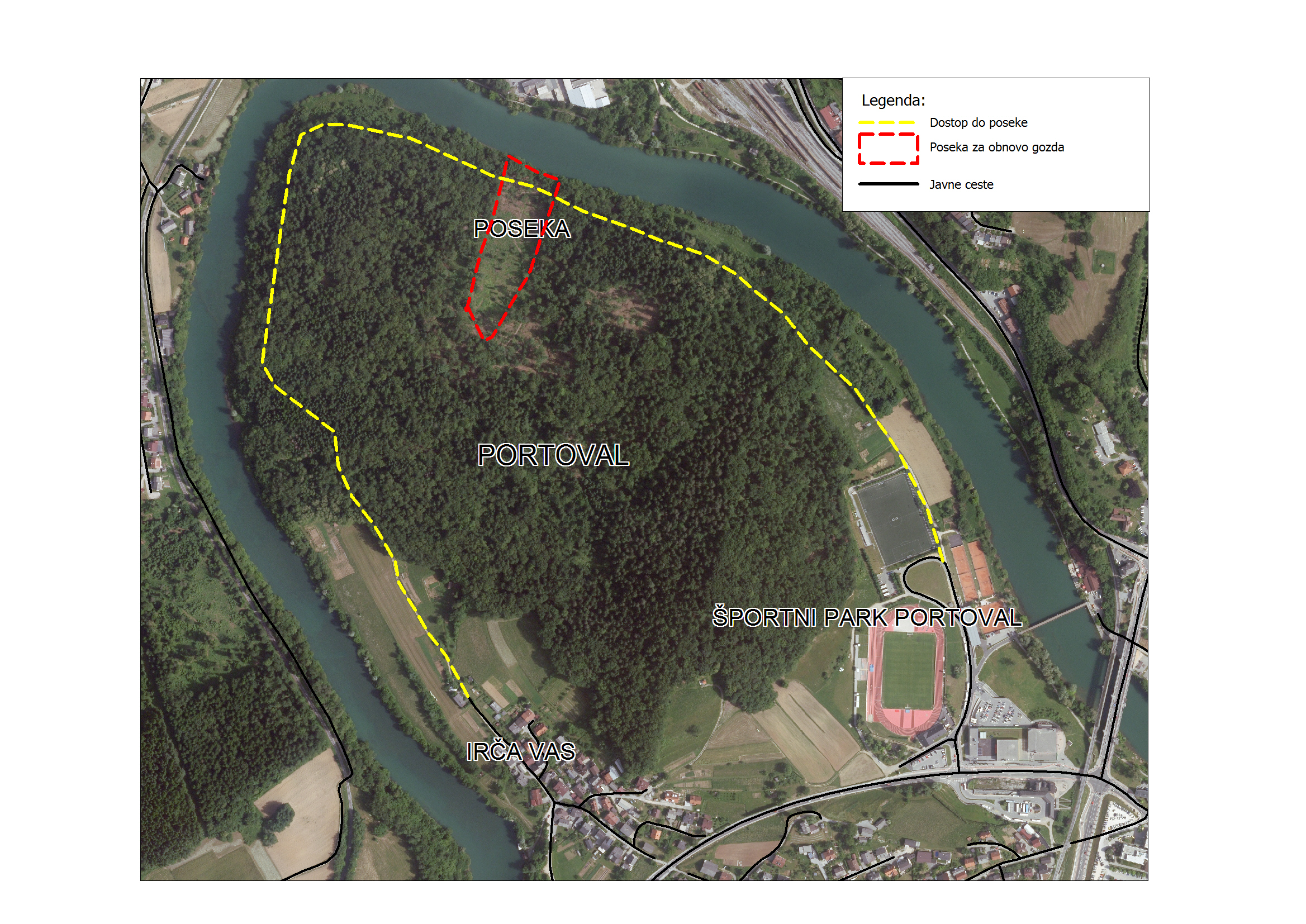 Delo na poseki v gozdu bo potekalo v torek, 21. marca 2017, od 10. do 18. ure. Najlažji dostop je iz smeri Športnega parka Portoval ali Irče vasi po gozdnih poteh vzporedno z reko Krko.