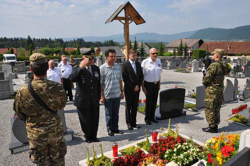 Polaganje ikebane na grob v osamosvojitveni vojni padlega Franca Uršiča na pokopališču v Prečni
