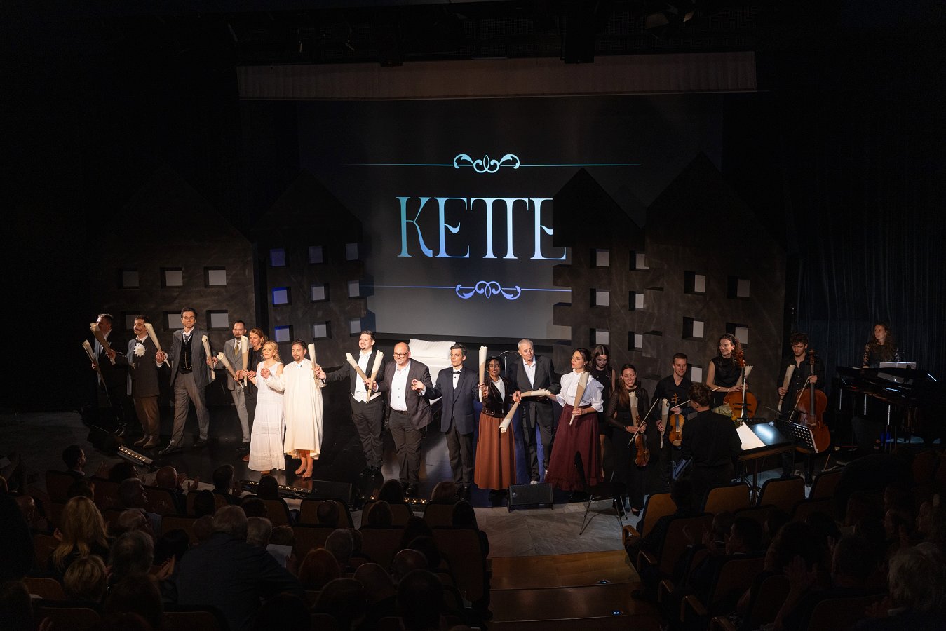Na odru Kulturnega centra Janeza Trdine Novo mesto je sinoči ob 30-letnici tega hrama kulture in skorajšnji 150-letnici rojstva slovenskega poeta Dragotina Ketteja zaživel operni muzikal Kette v produkciji Zavoda Novo mesto ter požel stoječe ovacije in gromek aplavz. Slovenci smo s tem dobili glasbeno-gledališko delo o velikanu slovenske literature in Novem mestu. Obiskovalce je navdušila tudi javnosti prvič predstavljena Kettejeva torta.