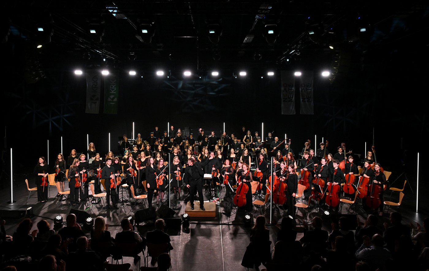 Pod taktirko dirigenta Mira Sajeta je 90-članski orkester novomeških simfonikov požel val navdušenja, programsko prepletel in povezal klasiko ter sodobnost, kot se za Prešernov dan spodobi pa je bil poseben poudarek namenjen skladbam slovenskih avtorjev. Ob izjemnem nastopu celotnega orkestra kot tudi solistke Nine Strnad ter recitatorjev Carmen L. Oven ter Luke Bregarja, nihče od gledalcev – teh se je dvorani zbralo več kot 1200 - ni ostal ravnodušen.