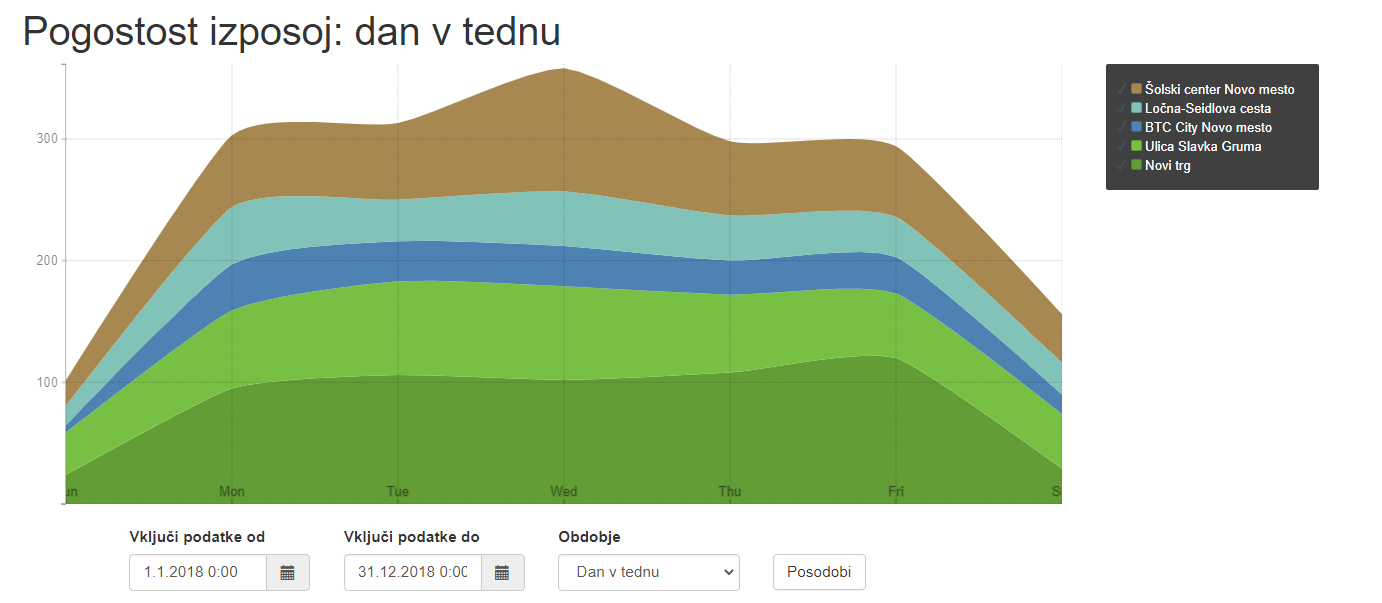 Število opravljenih izposoj po letih in statistika po dnevih v tednu